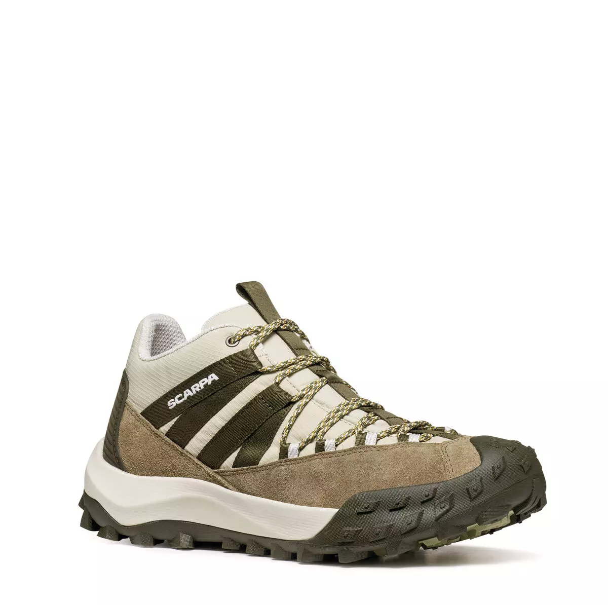 Подметката Spyder Cross осигурява изключителен комфорт благодарение на конструкцията си с променлива плътност, което я прави едновременно защитна и омекотена. Спортният дизайн на грапавия протектор осигурява сцепление и защита дори при дълги разходки по неравен терен.