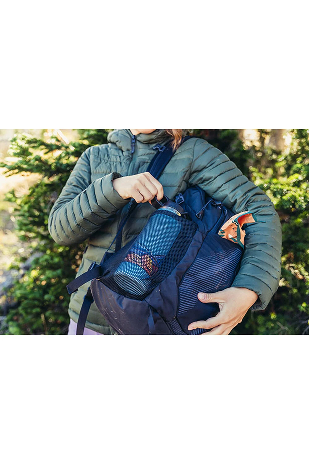 • Преден разтеглив мрежест джоб за допълнителна екипировка и организация, със сигурно закопчаване с катарама