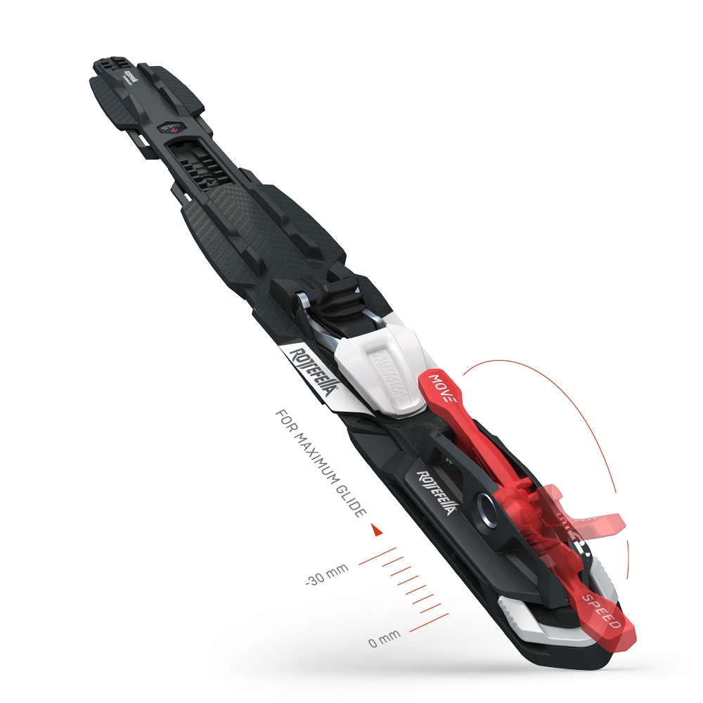 Този комплект за ъпгрейд към система Rottefella Move осигурява максимално плъзгане за секунди. Просто повдигнете, бутнете и заключете лоста и автоматът е с 30 mm по-назад с едно просто движение. Перфектно решение за ваксирани ски. Системата Rottefella MOVE™ Race е одобрена от FIS и може да се използва във всички състезания. Комплектът е съвместим с всички ски с монтажна пластина Rottefella Mounting Plate.