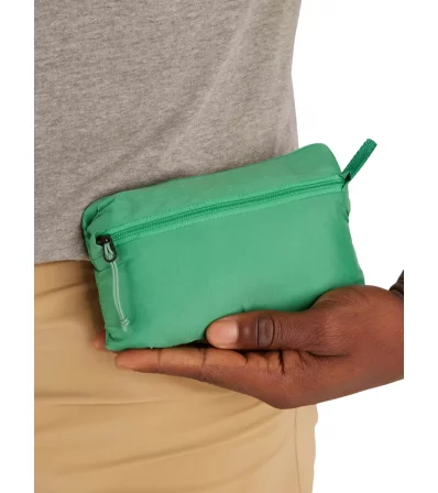 Функционалността е насочена към активна outdoor употреба. Якето разполага с водоустойчив джоб с цип на гърдите, достъпен и при носене на раница или катерачен хамут, а конструкцията позволява моделът да се прибира в собствения си джоб за по-лесно съхранение и транспортиране. Фиксираната качулка с периферно регулиране, регулируемият подгъв и оформените маншети с частично вграден ластик допринасят за по-добро прилягане и защита от вятър и влага.